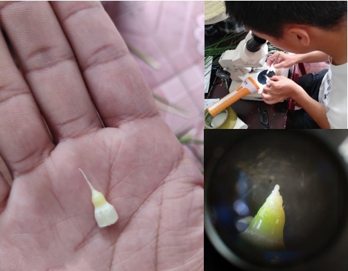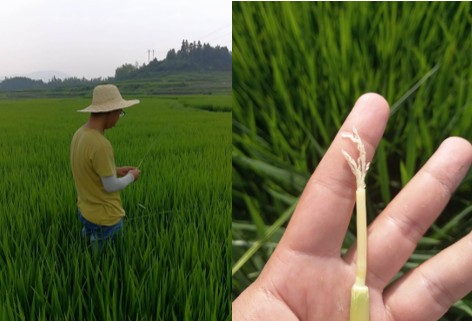 過去的七月,唐家坊繁忙而又熱情洋溢,簡(jiǎn)單卻也充實(shí)。從月初觀葉齡,到月中查花期,再到月末去雜株,日日夜夜,隆平人的身影與汗水,遍灑唐家坊的水稻田間。 七月上旬,我們一起觀察各組合水稻的葉齡,對(duì)做過標(biāo)記的父母本進(jìn)行觀察記錄,并在基地的葉齡記載表上登記。葉齡記載作為生產(chǎn)過程中最重要的工作之一,不僅可以反映各組合的生長特性和生長進(jìn)程,亦可以為來年制種生產(chǎn)技術(shù)方案作參考依據(jù)。 七月中旬,一個(gè)接一個(gè)的組合陸續(xù)進(jìn)期了,我們的工作重心也開始轉(zhuǎn)到花期觀測(cè)上。花期相遇是雜交水稻制種高產(chǎn)的保證,因此我們需要時(shí)刻關(guān)注父母本的花期情況,以便花期出現(xiàn)偏差時(shí)及時(shí)通知農(nóng)戶采取措施(追施肥料、重曬田等)進(jìn)行調(diào)節(jié),促使父母本達(dá)到理想花期。唐家坊基地組合多,面積大,每天要看的點(diǎn)和樣本數(shù)量多,而有時(shí)為了佐證個(gè)別組合的花期情況,我們的工作量會(huì)隨之加大,觀測(cè)點(diǎn)可能由平時(shí)的3-5個(gè)點(diǎn)增加到10個(gè)點(diǎn)左右。在花期觀察過程中,我們需要有目的選取了每兜最快的,每片最有代表性的田塊進(jìn)行取樣,以保證我們所觀察的花期正確性。 幼穗觀察初期,具體情況的觀察肉眼無法看到,所以需要將取的樣本帶回基地,進(jìn)行幼穗剝檢,并在解剖鏡下進(jìn)行觀察,最后記錄余葉數(shù)和花期情況,以便分析判斷。 過了幼穗觀測(cè)1-2期,后面的花期特征比較明顯且能在肉眼下就可以就行觀察,這個(gè)時(shí)候我們一般都是選擇在田間直接剝開觀察。 七月下旬,花期觀測(cè)的工作已接近尾聲,田間雜株的清除開始成為我們的首要任務(wù)。純度是種子質(zhì)量的一個(gè)重要指標(biāo),所以水稻生長過程中的雜株清除工作顯得尤為重要。由于個(gè)別組合的雜株較多,我們請(qǐng)了當(dāng)?shù)氐呐ぃ瑢⒅晷?、葉型不一樣的異形株以及早熟株進(jìn)行清除,我們則隨后清理遺漏的雜株并統(tǒng)計(jì)第一次除雜后的田間含雜率。在經(jīng)過女工的初次清除以及我們的復(fù)查,田間含雜率都降到了公司的標(biāo)準(zhǔn)之內(nèi),制種田也呈現(xiàn)出它應(yīng)有的整整齊齊。 縱然烈日當(dāng)頭,抑或大雨傾盆,或是狂風(fēng)突起,隆平人始終堅(jiān)守在此。 手心捧不下這一方熱土,便將它埋藏在炙熱的心底,用汗水來澆灌,用關(guān)切來施肥,陪它看晴空萬里,陪它念山色新雨,陪它走過這花開花落又一個(gè)四季輪回,至始如一,不退卻,不懈怠。雖然它從來一言不發(fā),但是七月,是我和它的語言。