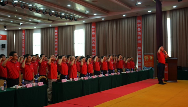 會(huì)上,在營銷總監(jiān)盧成林的帶領(lǐng)下,全體參會(huì)人員就落實(shí)市場(chǎng)管控、強(qiáng)化營銷協(xié)同作出鄭重承諾。