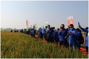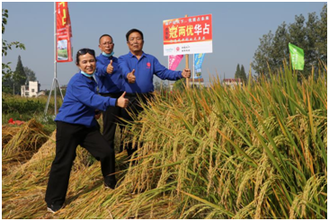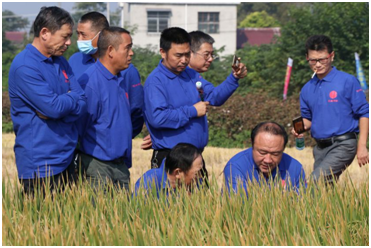 會議上午,到場的代理商和零售商現(xiàn)場見證了鼎城區(qū)十美堂鎮(zhèn)黑山嘴冠兩優(yōu)華占種植表現(xiàn),對品種的抗倒性、分蘗力,結實率等贊不絕口,紛紛豎起大拇指并合影留念。