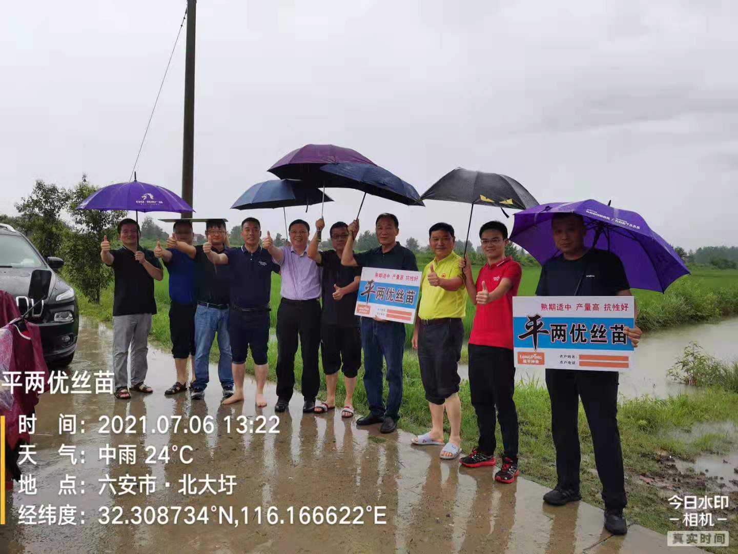 7月6日,楊總一行在安徽霍邱查看平兩優(yōu)絲苗省級(jí)展示。