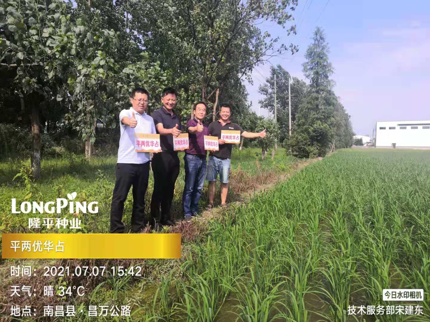 7月7日,譚總一行在江西南昌查看平兩優(yōu)華占省級(jí)展示片。