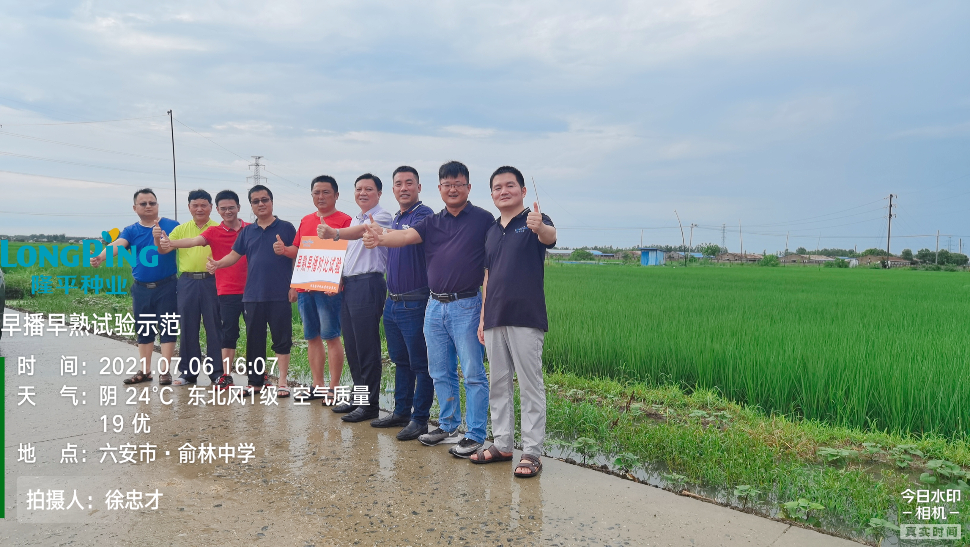 7月6日,楊總一行在安徽霍邱查看早播早熟優(yōu)質(zhì)中稻試驗(yàn)。