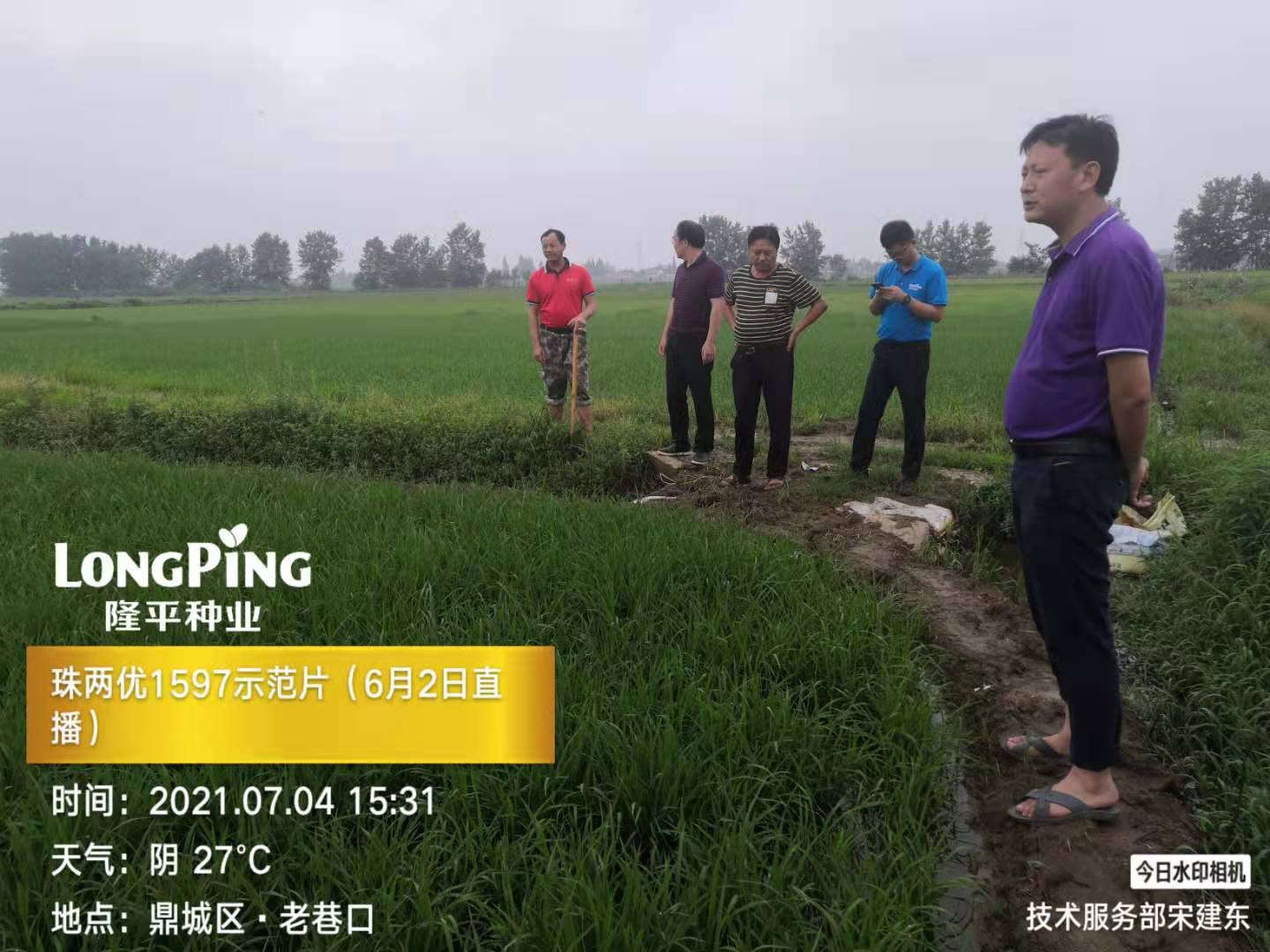 7月4日,譚總一行在湖南鼎城查看公司高端優(yōu)質(zhì)中稻珠兩優(yōu)1597示范。