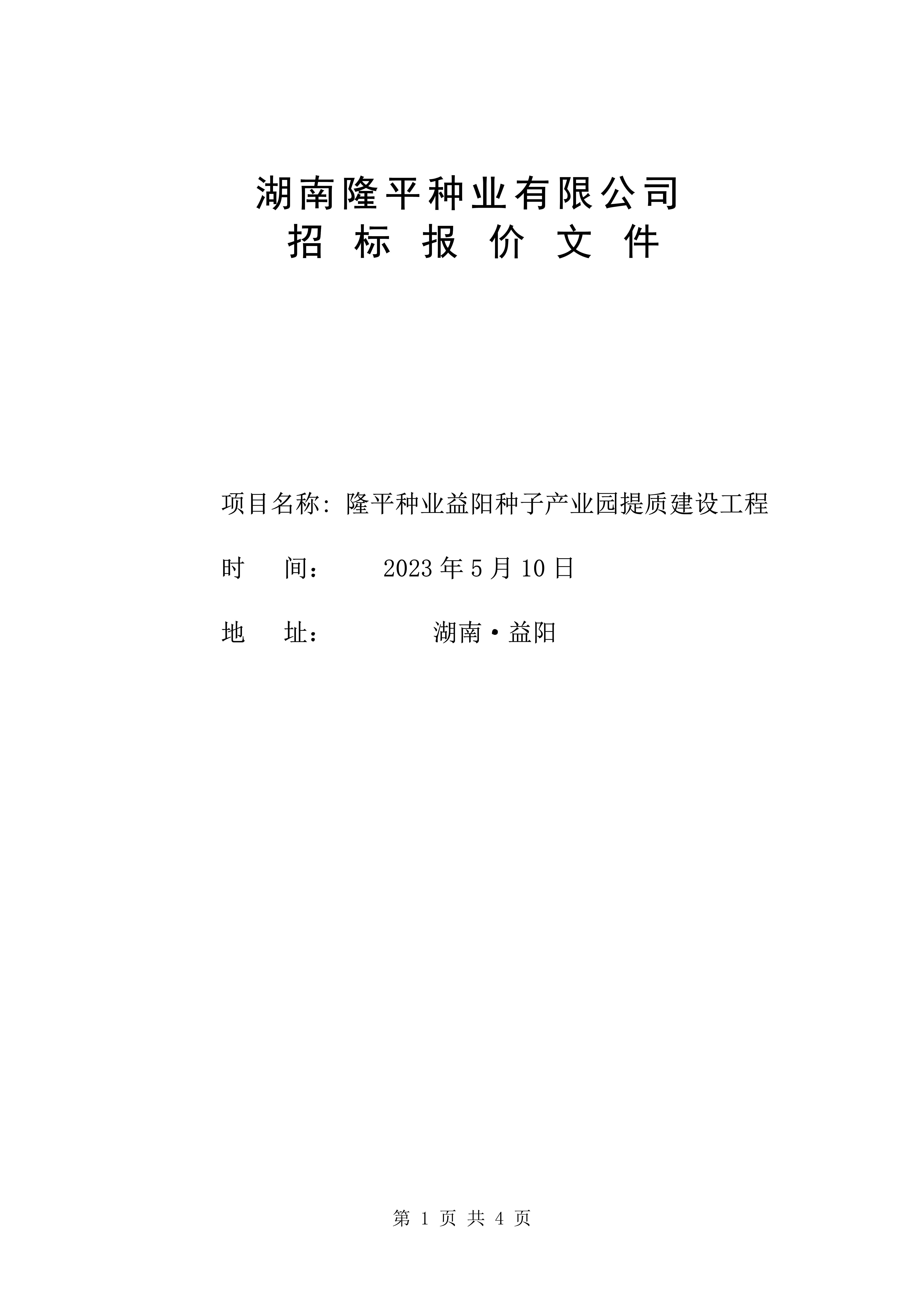 隆平種業(yè)益陽種子產(chǎn)業(yè)園提質(zhì)建設(shè)工程招標(biāo)公告