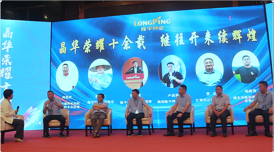會議第二項,由張玲老師主持以“晶華榮耀十余載,繼往開來續(xù)輝煌”為主題的對話訪談。公司領(lǐng)導(dǎo)、營銷專家及經(jīng)銷商,分別從市場、營銷、支持、育種與生產(chǎn)等角度結(jié)合晶兩優(yōu)華占的特性和定位與主持人進行了互動交流。帶領(lǐng)大家一起回顧了晶兩優(yōu)華占的推廣歷程、晶兩優(yōu)華占為什么能成為經(jīng)典、接下來我們會怎么做等。對話訪談現(xiàn)場氣氛活躍,大家激情澎湃,信心滿滿,為晶兩優(yōu)華占繼往開來,再續(xù)輝煌奠定了堅實的基礎(chǔ)。