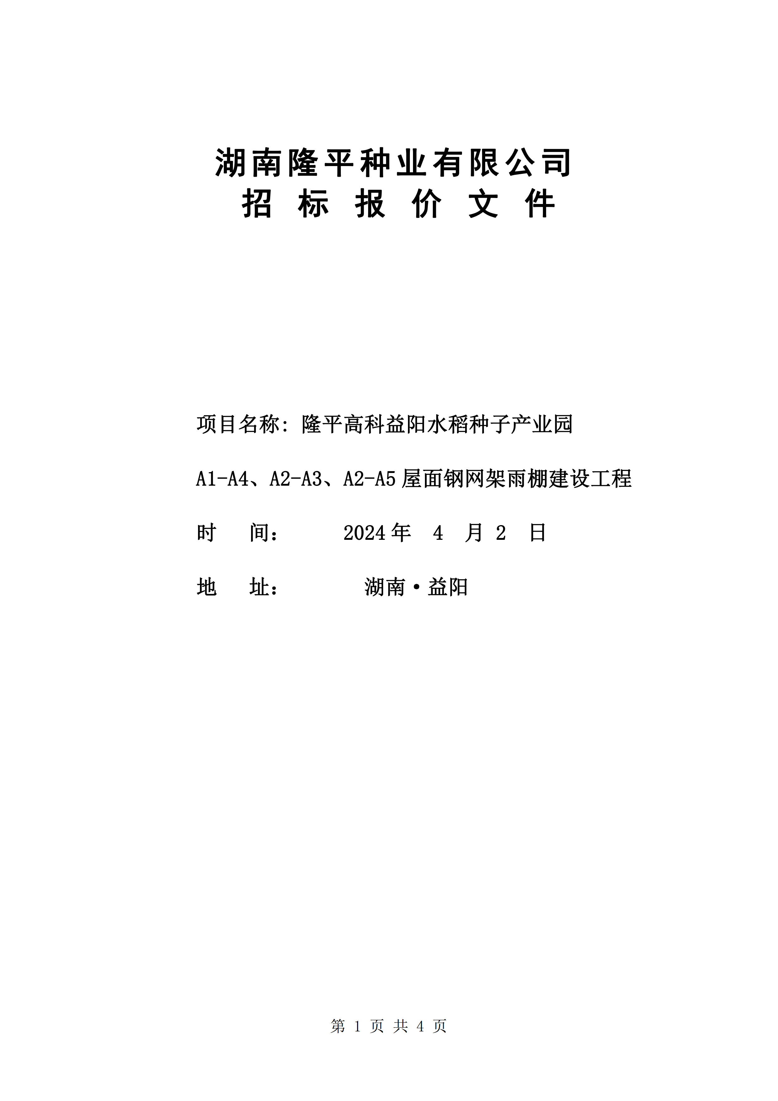 隆平高科益陽(yáng)水稻種子產(chǎn)業(yè)園 A1-A4、A2-A3、A2-A5屋面鋼網(wǎng)架雨棚建設(shè)工程