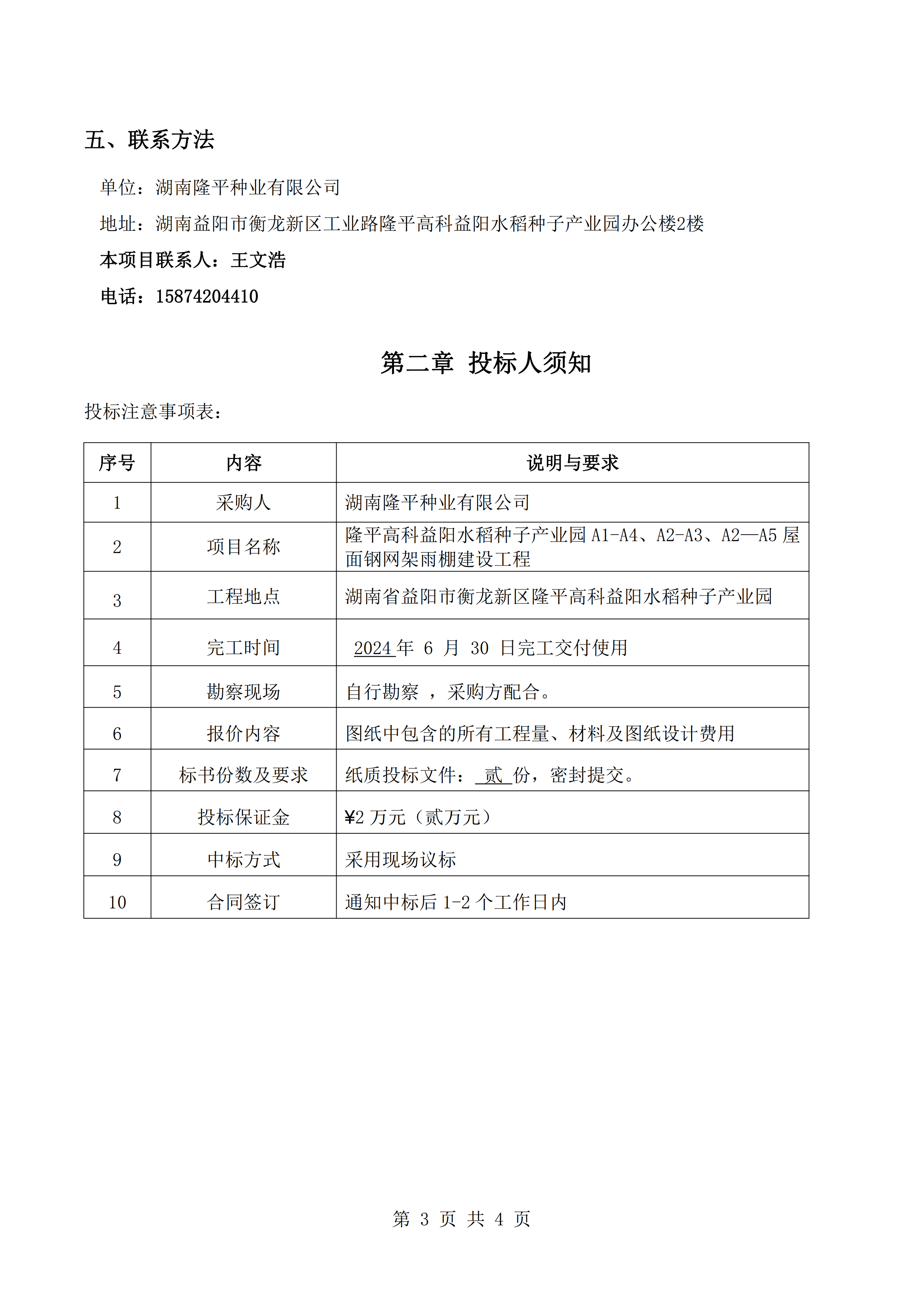 隆平高科益陽(yáng)水稻種子產(chǎn)業(yè)園 A1-A4、A2-A3、A2-A5屋面鋼網(wǎng)架雨棚建設(shè)工程 中標(biāo)通知書
