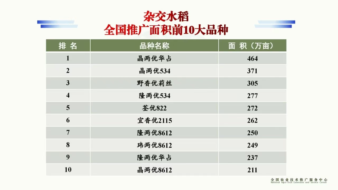 大會還發(fā)布了《2023年度雜交水稻全國推廣面積前10大品種》,公司晶兩優(yōu)華占、晶兩優(yōu)534分別以464萬畝、370萬畝的推廣面積蟬聯(lián)第一、第二名。值得一提的是,2018年-2023年,晶兩優(yōu)華占、晶兩優(yōu)534已連續(xù)六年包攬雜交水稻推廣面積全國前二。