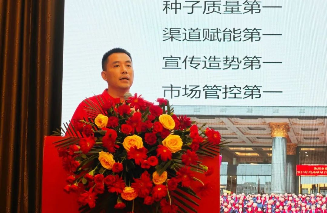 營銷總監(jiān)張一明在《共創(chuàng)颶系大時代 繪就種業(yè)新藍圖》主題報告中,重點解讀了“颶兩優(yōu)系列”品種市場管控的重要性,強調公司將堅定執(zhí)行系統(tǒng)性營銷模式,強化市場協同與管控力度,保障市場有序發(fā)展。