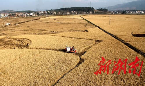 1月3日,寧遠縣水市鎮(zhèn),村民在收割晚稻。收割的晚稻,水分在14%左右,可以在田間直接賣給米廠碾米。近兩年,水市鎮(zhèn)農民探索出“禾上曬谷、延后收割”的種稻模式。他們種植的水稻品種“深優(yōu)9586”可推遲到“冬至”前后收割,每畝節(jié)約曬谷、搬運人工費約90元。2015年,水市鎮(zhèn)“禾上曬谷、延后收割”晚稻推廣種植面積達1.2萬畝。